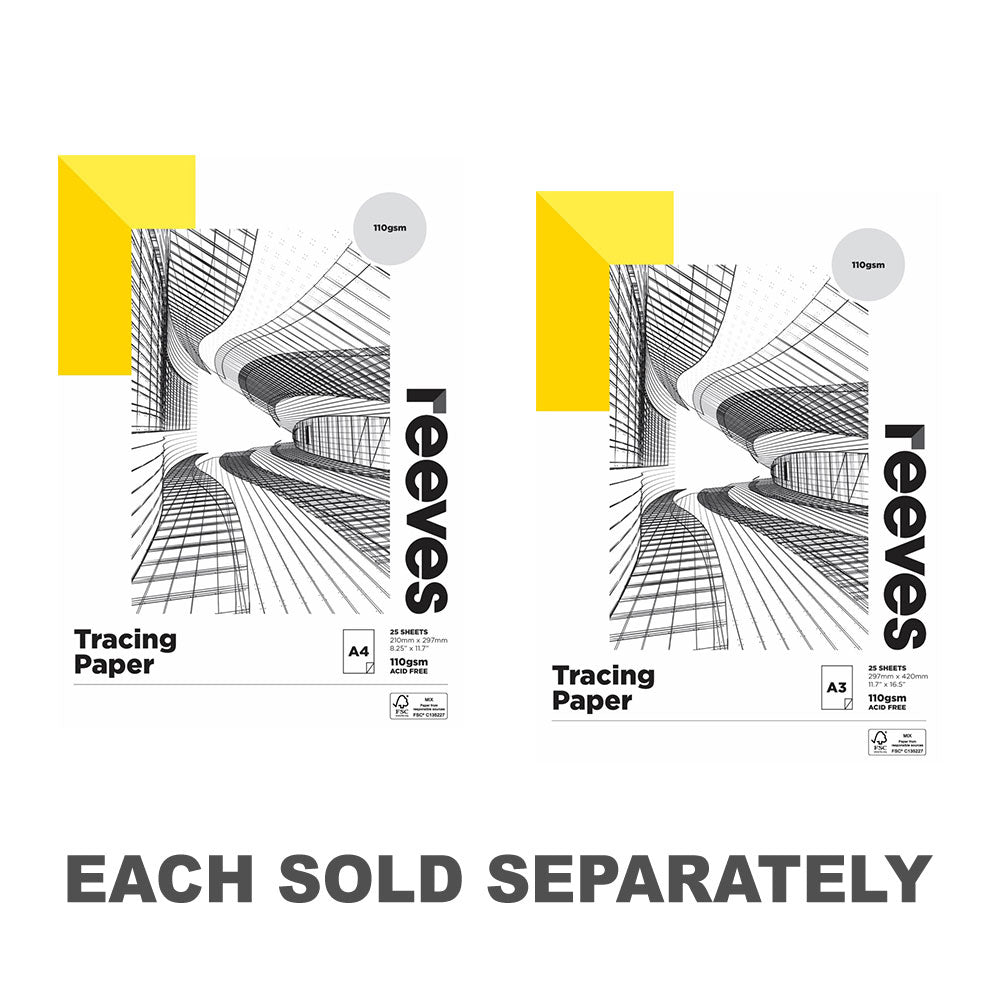 - Met 25 lakens van hoogwaardig traceringspapier is de Reeves 110GSM Mix Credit Paper Pading Paper Pad de perfecte keuze voor het opstellen en creëren van gedetailleerde schetsen met gemak en precisie.