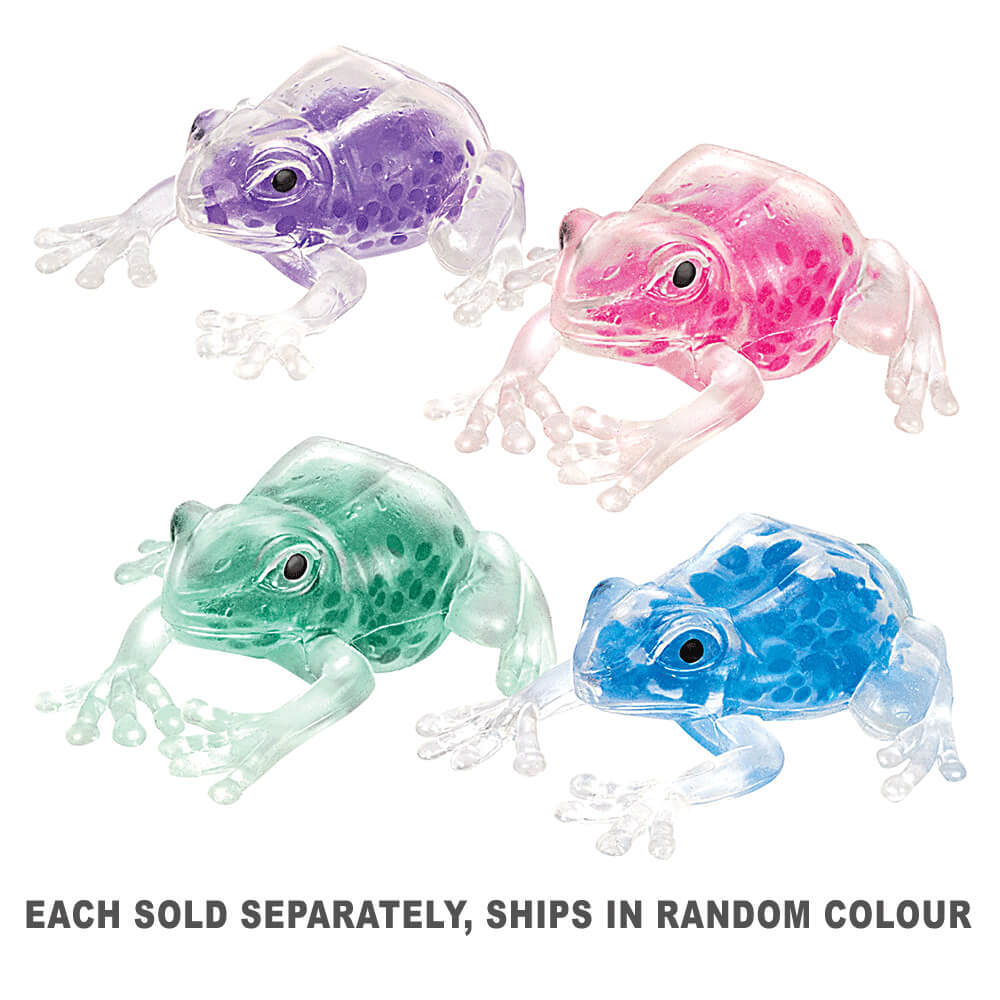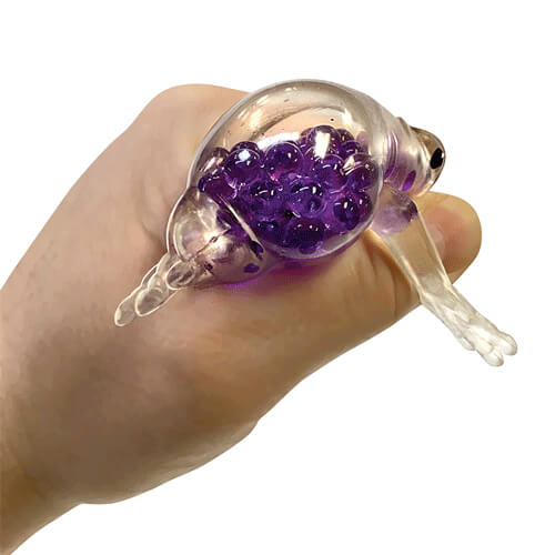 Deze schattige kikker is een rustgevende sensorische bal. Het is gevuld met een stel dikke gelballen in de flexibele huid. Wanneer je de bal knijpt, duwen de kralen eruit en rond de bal uitpuilend. Het is erg rustgevend om de kleine gelkralen te voelen, en het maakt ook een zacht zwaaiend geluid om toe te voegen aan de zintuiglijke ervaring.