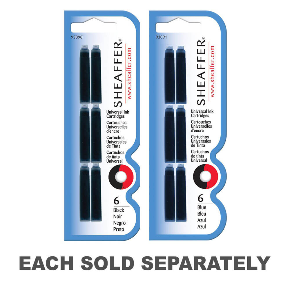 Sheaffer Scrip Universal Ink Cartridges. Speciaal geformuleerd, Sheaffer Scrip Ink zal zorgen voor een lange schrijfleven en een soepele stroom inkt naar papier, verpakt op blisterkaarten.
