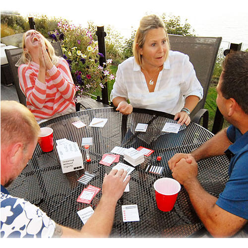 - Ook geweldig voor vrijgezellenfeesten, onderzetters, bagagelabels, avontuurlijke positie-suggesties en 54-kaarten pick-up (maar we raden nog steeds aan om het hoofdspel te kopen)