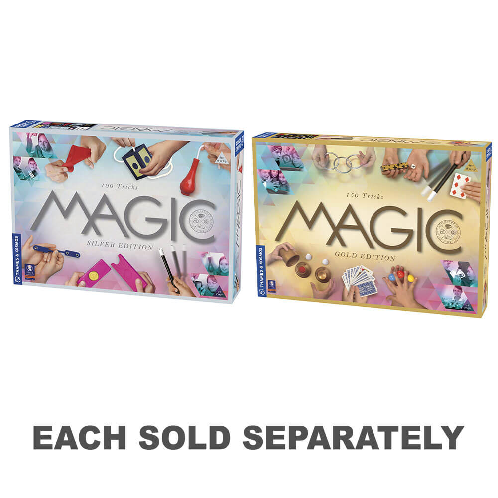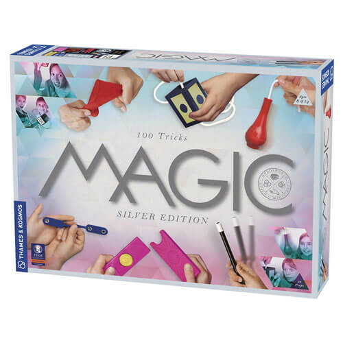 Grijp je toverstok! Met hoogwaardige magische rekwisieten en eenvoudige geïllustreerde instructies kunnen de 100 goocheltrucs in Magic Silver Edition gemakkelijk worden geleerd, geoefend en beheerst - om het publiek te verdoven en te verbazen! Dots verschijnen en verdwijnen in paddle -trucs. Laat speelkaarten komen en gaan om van plaats te veranderen. In trucs met geld verliest valuta waarde, geld verdubbelt in waarde en munten verdwijnen uit een muntdoos en verschijnen vervolgens opnieuw. Munten gaan door zakdoeken, verdwijnen in dunne lucht en blijf op magische wijze geplaatst als ze dat niet zouden moeten doen! Papiergeld verdwijnt en melk verschijnt uit het niets in trucs met buizen. Een aantal trucs omvatten knopen en touwen: knopen in touwen maken zichzelf los, spring van touw naar touw en verdwijnen. Een touw gaat door vaste objecten. Een fles zweeft in de lucht. Een rigide toverstaf wordt flexibel. Een magische toverstok groeit en krimpt, gaat door objecten en komt uit een lege zak. De magische toverstok draait en heft. Onzichtbare krachten bewegen de toverstok. De toverstok vertelt de tijd. Ma