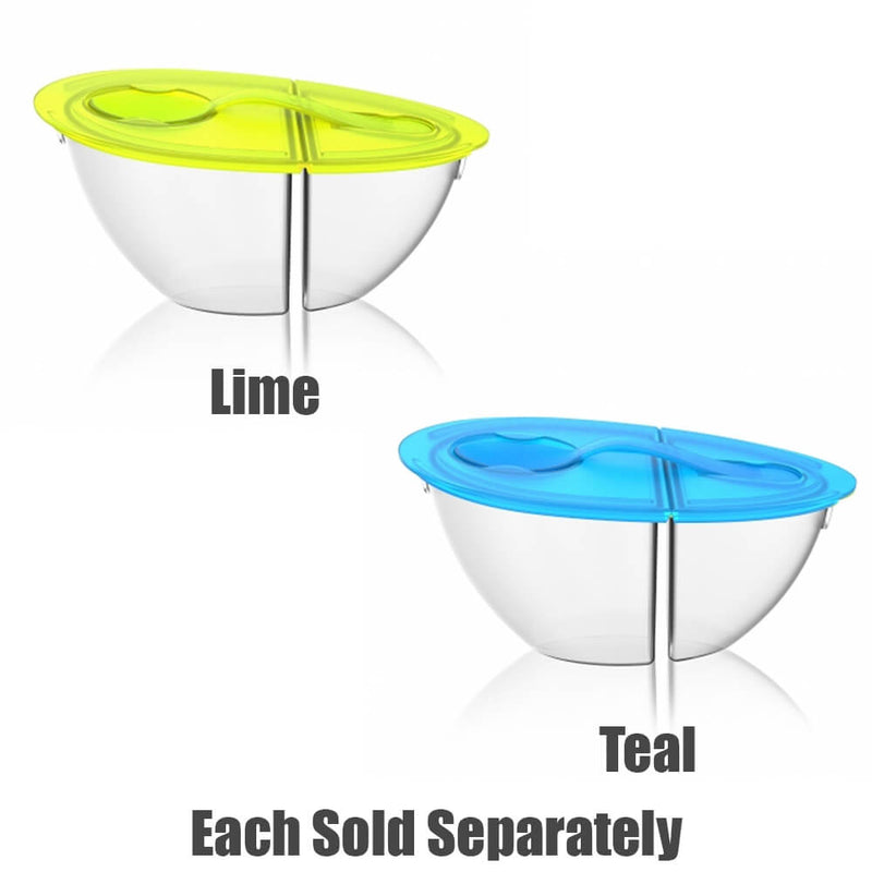 De flip n 'giet heeft een capaciteit van 20 ounce en de twee compartimenten betekenen dat de toppings niet van tevoren met de yoghurt mengen. Als je klaar bent om te eten, zet je het deksel gewoon uit en draai je de toppings om in de yoghurt. Je lepel is handig "vergrendeld" op het deksel, dus het is precies waar je het nodig hebt als het tijd is om in te graven!