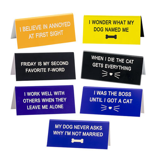 Breek de monotonie van het werk en breng wat LOL's naar het kantoor met dit gele bureauteken van zeggen wat?. Bijschrift luidt: 'Ik geloof in geïrriteerd op het eerste gezicht'. Productmaatregelen 9 cm x 4 cm.